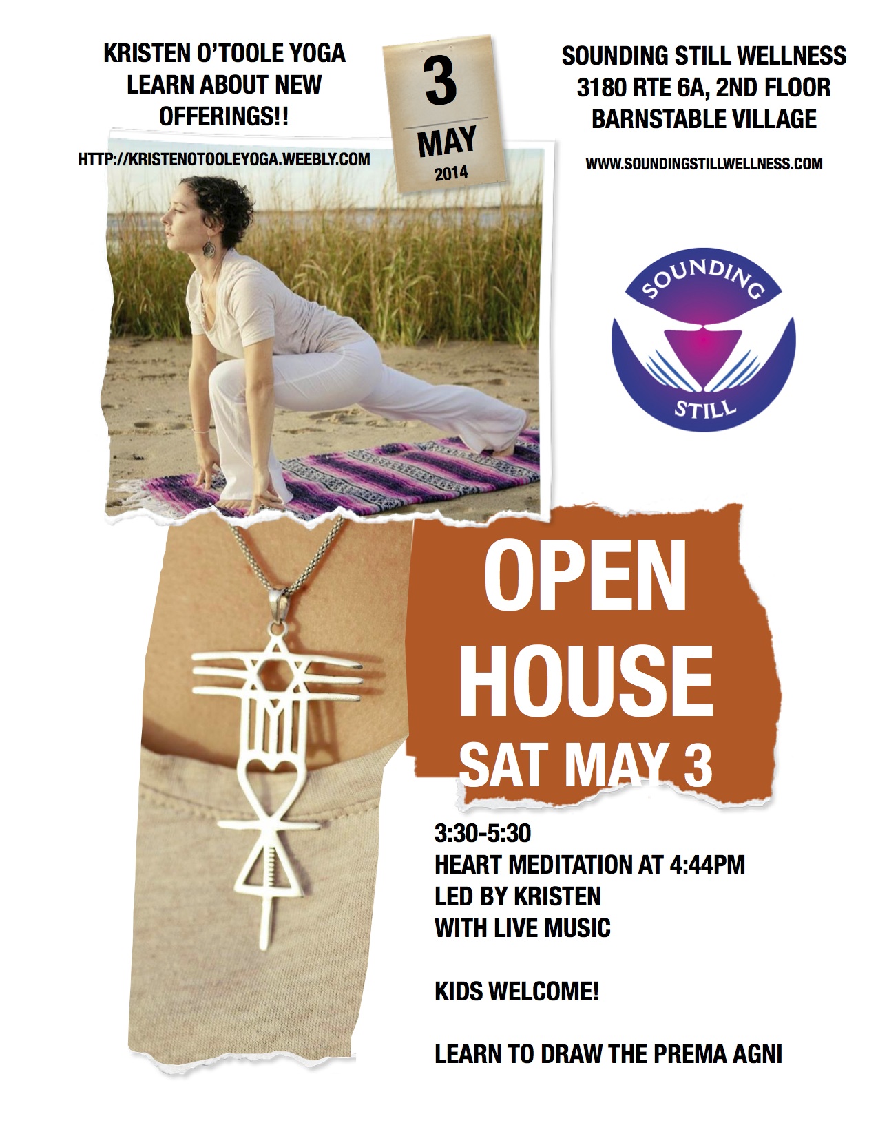 And Finally, PLEASE Join us this SATURDAY MAY 3 3:30-5:30 for a FREE OPEN HOUSE. Learn to draw the Prema Agni and more about Kristen O’Toole Yoga and our upcoming SUMMER CAMP for kids.